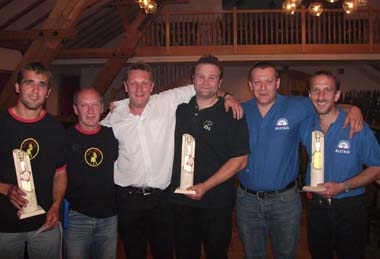 Endergebnis/21 Teams(von links):3.Platz: Peng Sau Hie(Schweiger Tom/Kurz Sigi)1.Platz:Dürer Team(Schmid Jürgen/Binder Richard)2.Platz:Die Bajuwaren(Böhm Georg mit Freund)